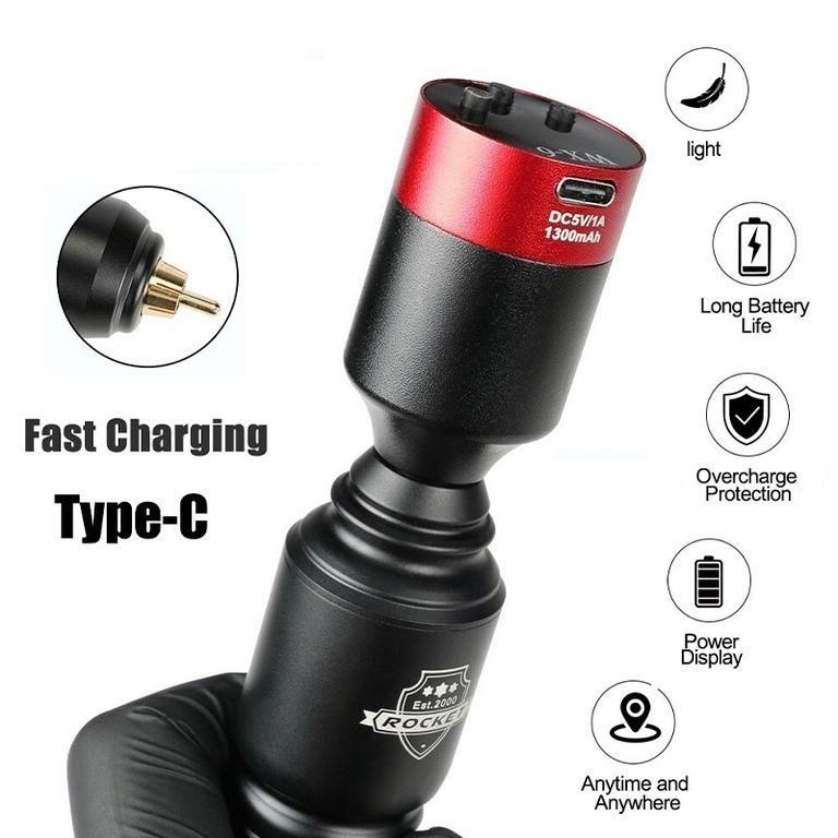 Легкий компактный беспроводной аккумулятор, совместимый со всеми видами тату-машинок, имеющих RCA соединение.